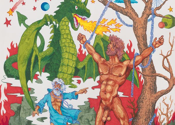 In the 1970s, Mike began to split his time between the Bronx and San Francisco, a hotbed for the underground comics scene where Mike’s drawings would find a home in the pages of gay erotic magazines like Gay Heart Throbs. At first something of a day job to support his filmmaking, these drawings have taken on a trajectory of their own, critically praised for achieving irrepressible joy within unabashed lewdness. In Broken Gods, which centers on drawings from 2018, gladiators, pirates, hippies, jocks, androids, devils and warlocks run amok with hyperbolic anatomy, lovingly rendered contours, and ingenious coloration. A special limited edition set of prints of three recent drawings will also be available.